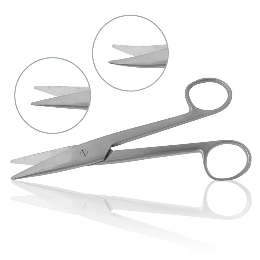 Dissecting scissors are a versatile instrument that can be used in multiple procedures and settings. They are available straight or curved, in a variety of lengths, and have a standard beveled blade.